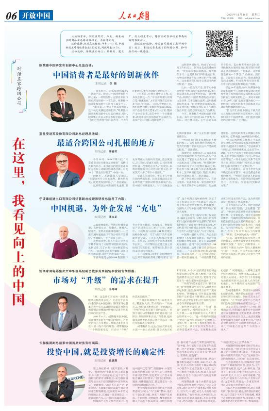 马丁内斯告诉记者,和中国制造商、供应商打交说念,让他感到“沉静”。“中国经济是天下经济发展的梗阻引擎,它荒芜巩固,领有完善的物流体系、优胜的改进和营商环境,是制造业跨国企业发展的最好地点。咱们的中国合作伙伴也在和咱们一说念成长,为共同见地参预‘全天候’的资源。”在华责任17年的马丁内斯惊奇,“共赢,是中国文化的一部分”。