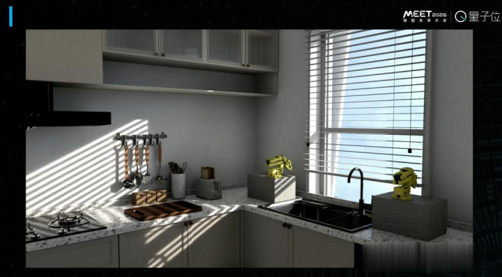 这是厨房场景,跟着卷帘拉动,卷帘会跟着确切变化动掸,同期不仅卷帘自己变化,窗外光影也会跟着卷帘变化而变化,合适确切寰球光影。