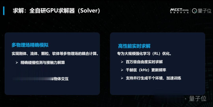 咱们的Solver是全栈自研的GPU Solver,不错接济百万级摆脱度的求解,达成刚体、流体、球体多物理场的耦合,物理精度达到亚毫米级,更新频率达到千赫兹。